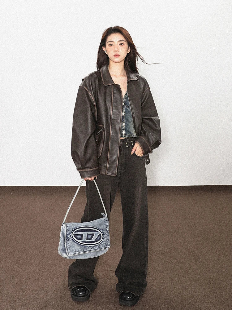 Distressed Brown PU Leather Jacket